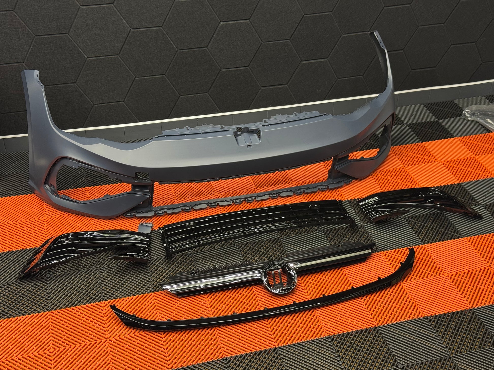 Dotato di griglia centrale, griglie inferiori paraurti, copertura gancio traino, fori PDC e supporti